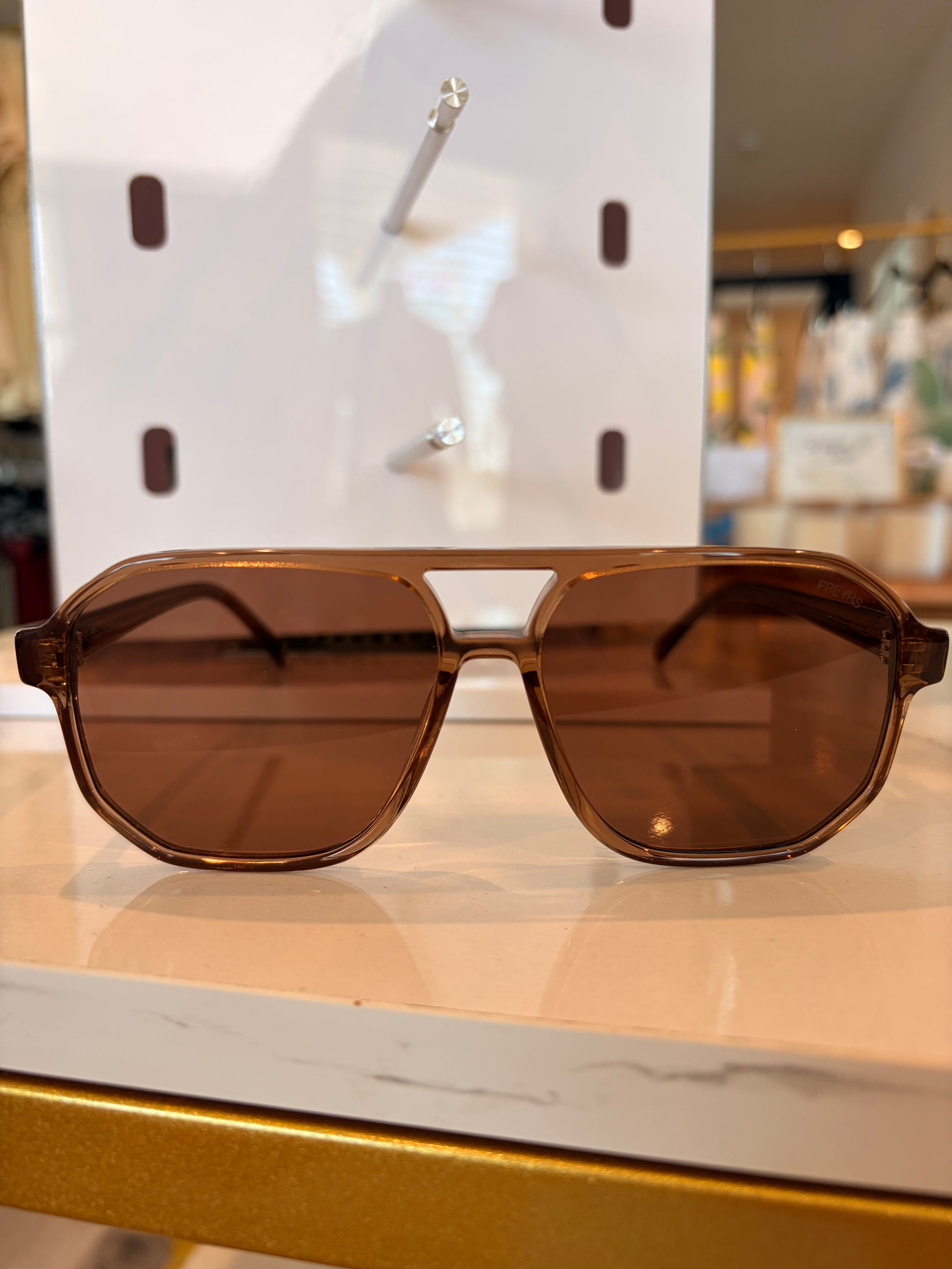 Classic with a modern edge, the Harbor View Sunglasses bring effortless style to sunny days. Designed with a bold square aviator silhouette and warm translucent brown frames, these sunglasses offer a sleek and timeless look that pairs perfectly with everything from casual denim to breezy summer dresses.