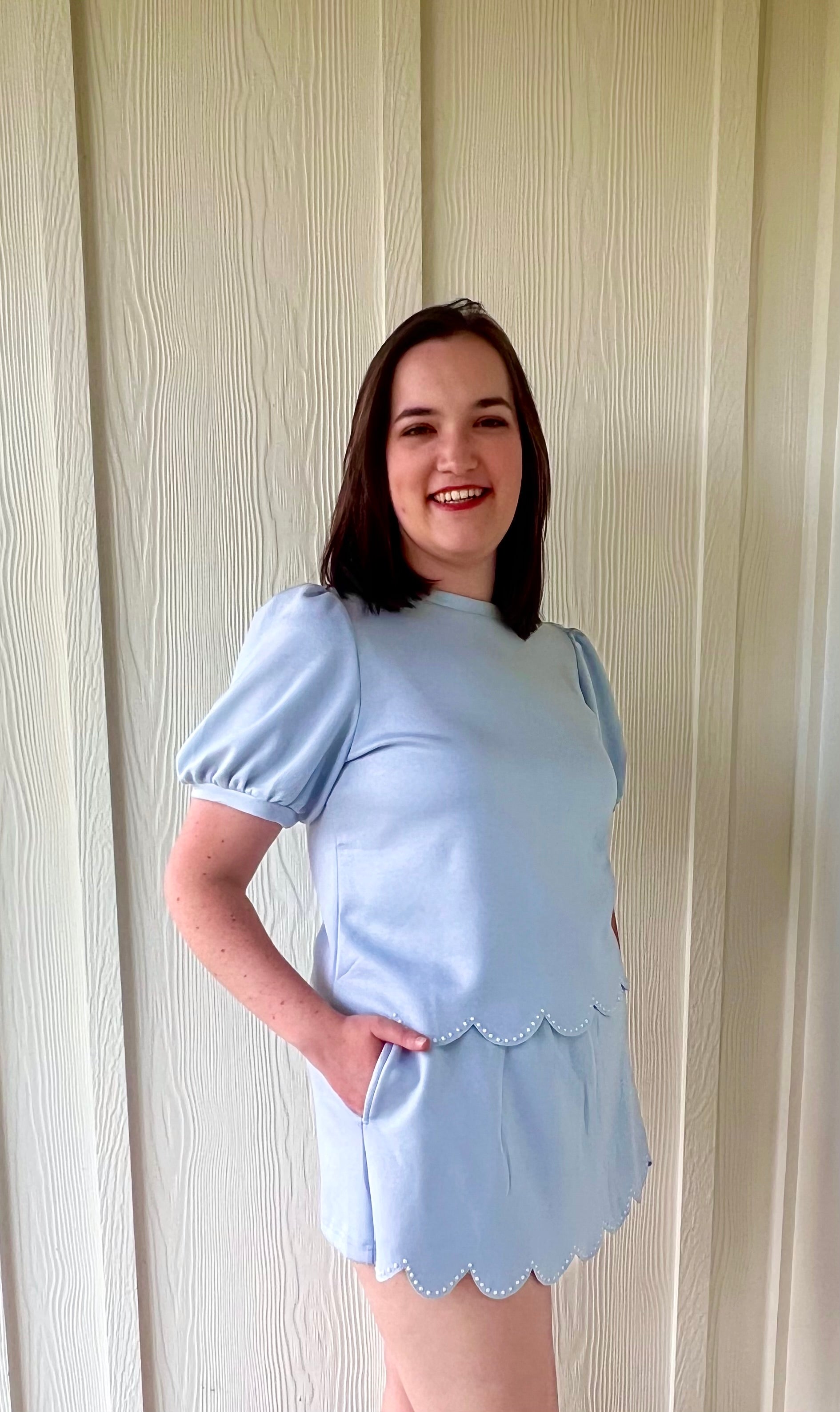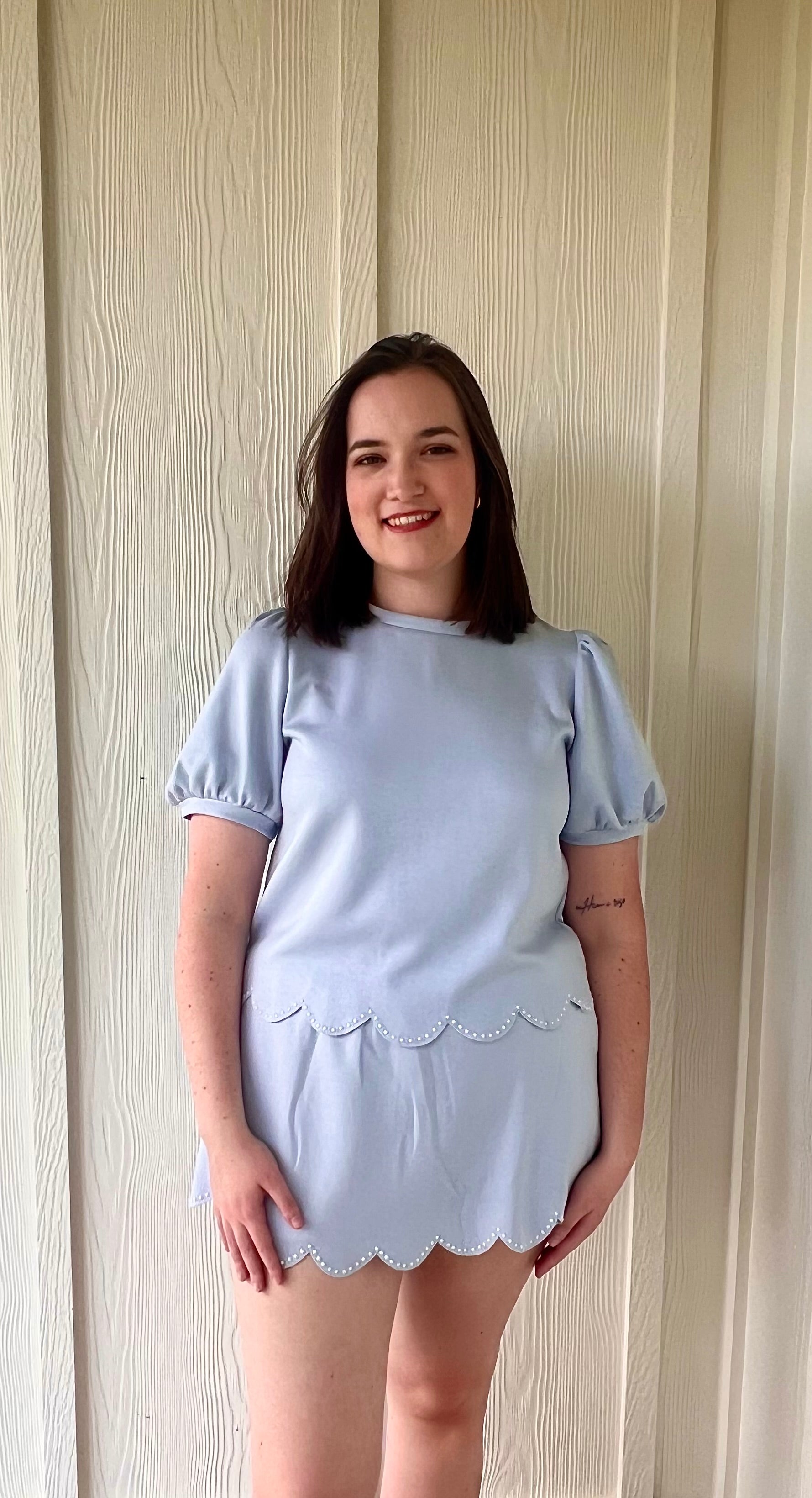 Sweet, soft, and oh-so-charming — the Sugar Pearl Scallop Set is your new go-to for feminine flair with playful polish. This two-piece set features a dreamy powder blue hue in a soft knit fabric, styled with puff sleeves and a relaxed silhouette for all-day comfort. Delicate scalloped hems are trimmed with tiny pearl details, adding a touch of elegance to this youthful look. Whether you’re brunching with friends or strolling downtown, this set brings just the right mix of cozy and cute. 💙✨🤍