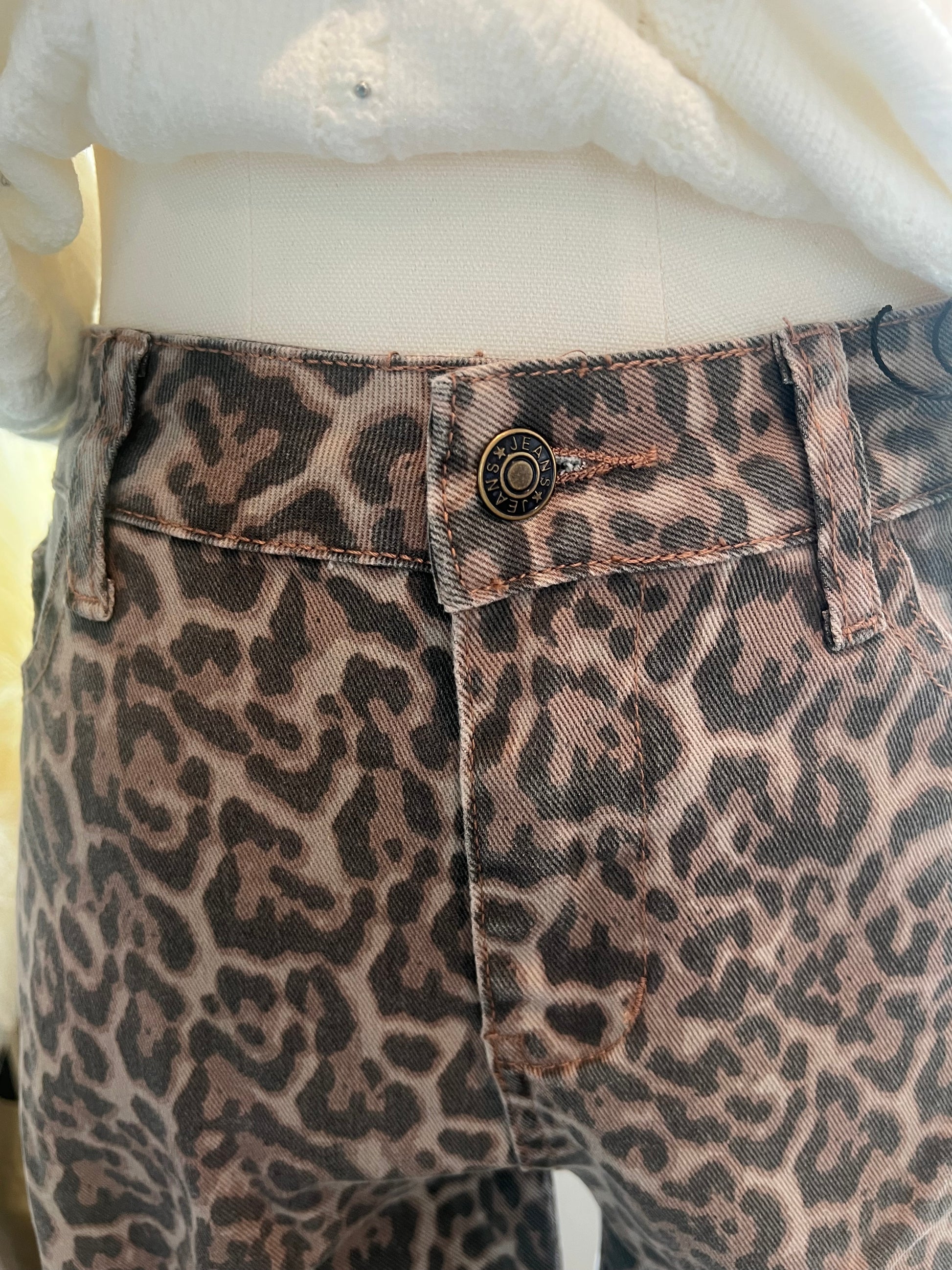 Unleash your bold side with the Wild Streak Wide-Leg Jeans. Featuring a chic leopard print in earthy taupe and black tones, these high-rise jeans bring a fierce twist to a timeless silhouette. The wide-leg cut offers both comfort and a flattering drape, while the structured denim ensures a polished fit. Perfect for dressing up with sleek heels or keeping casual with sneakers, these jeans are a statement piece that elevates any outfit. 🐆✨